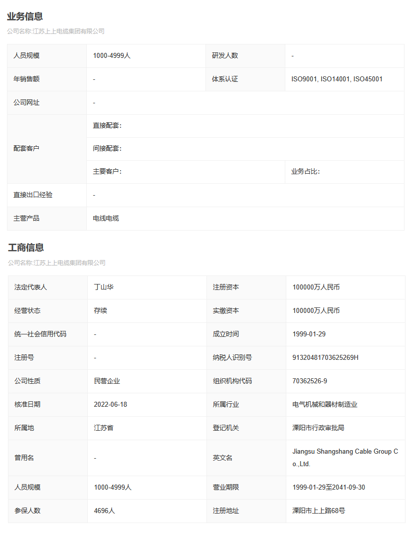 江苏上上电缆集团有限公司简介:江苏上上电缆集团创建于1967年,拥有国家认定企业技术中心和博士后科研工作站。上上电缆获得首届“中国线缆行业最具竞争力企业”第一名,全球绝缘线缆企业规模排名中国第一,全球第七,2018年企业实现销售超200亿元。企业还荣获中国工业界“奥斯卡”——“中国工业大奖”,并荣获第二届、第三届“中国质量奖提名奖”,董事长丁山华被中宣部、国家发改委联合评为全国“诚信之星”。